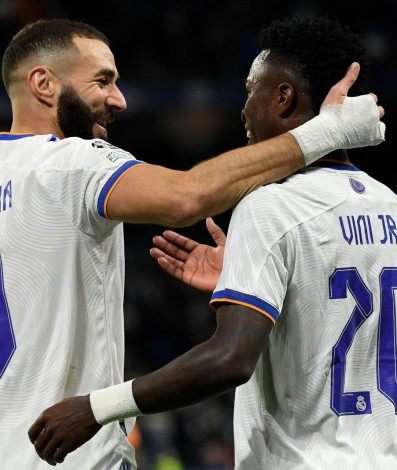 Vinicius Jr e Benzema brilham e Real Madrid vence na Liga dos Campeões