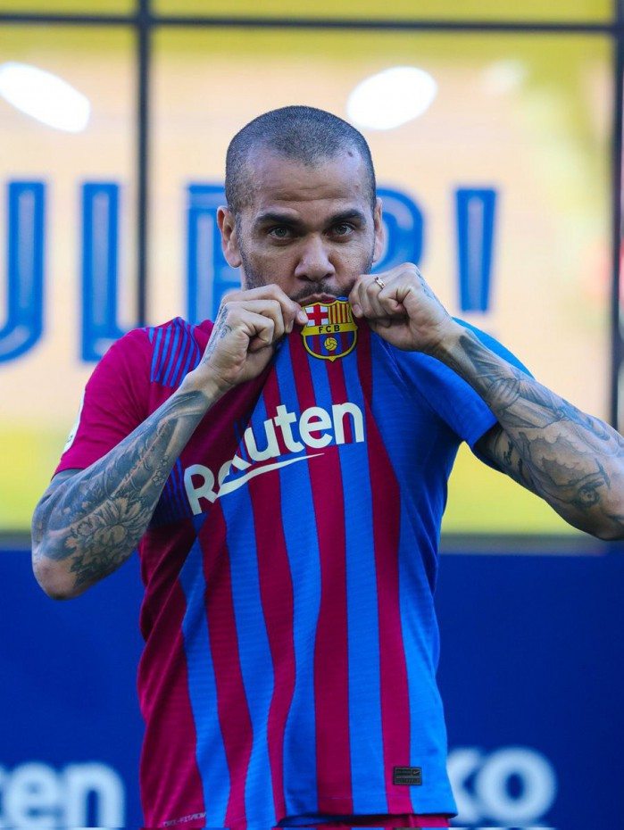 Esbanjando alegria, Daniel Alves se apresentou de chinelo, calça e blazer ao lado dos principais dirigentes do clube, incluindo o presidente Joan Laporta. No gramado, chegou a caminhar descalço sobre o gramado do estádio Camp Nou. "Algumas coisas podem mudar, agora estou um pouco mais bonito, mas tem outras coisas que não podem mudar, como a essência de cada um. É hora de colocar o Barça lá em cima", disse o lateral, apontando para seu chinelo.