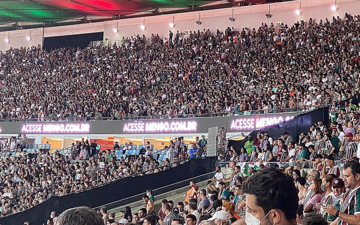 A imagem, divulgada pelo portal "NetFlu", mostrou o momento em que a publicidade do programa de sócio torcedor do Flamengo é exibida diante da arquibancada repleta de tricolores. Ainda vale ressaltar que a gestão do Maracanã é feita por Flamengo e Fluminense. A divisão se mantém enquanto a dupla aguarda a decisão do Governo sobre a nova concessão do estádio para os próximos anos.