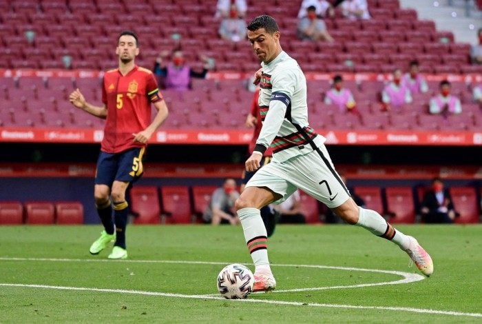 Cristiano Ronaldo tem 115 gols por Portugal, tornando-se em 2021 o jogador que mais balançou redes por seleções.