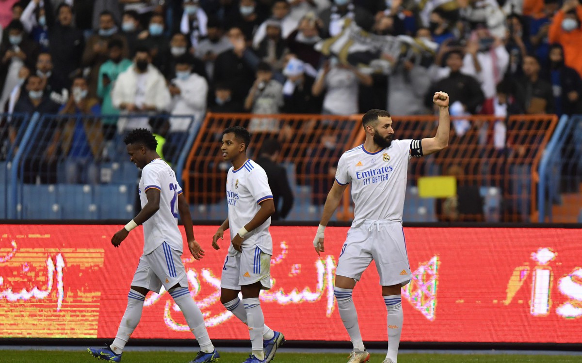 O técnico italiano Carlo Ancelotti mandou a campo uma equipe com quatro brasileiros. O zagueiro Éder Militão, o volante Casemiro e os atacantes Vinicius Junior e Rodrygo formaram a base do clube de Madri, que comandou as ações do primeiro tempo e praticamente anulou o Athletic Bilbao.