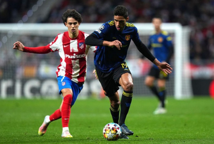 Raphael Varane disputa uma bola com João FelixAngel Martinez/Getty Images