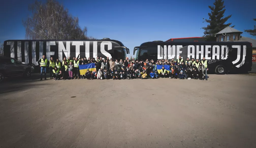 Uma delegação da Juventus com aproximadamente 20 pessoas foi até Zahony, cidade da Hungria na fronteira com a Ucrânia, para resgatar 80 pessoas, a maioria entre seis e 14 anos, além das mães. O projeto de ajuda humanitária também disponibilizou dois ônibus para levar os refugiados da guerra à Itália.