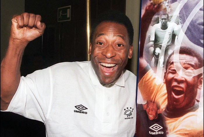 (FILES) In this file picture taken on November 14, 1997 Brazilian football "King" Edson Arantes do Nascimiento "Pele" poses for photographers before holding a press conference in a hotel in Madrid. - Brazilian football legend Pele turns 80 on October 23, 2020. (Photo by DOMINIQUE FAGET / AFP)AFP