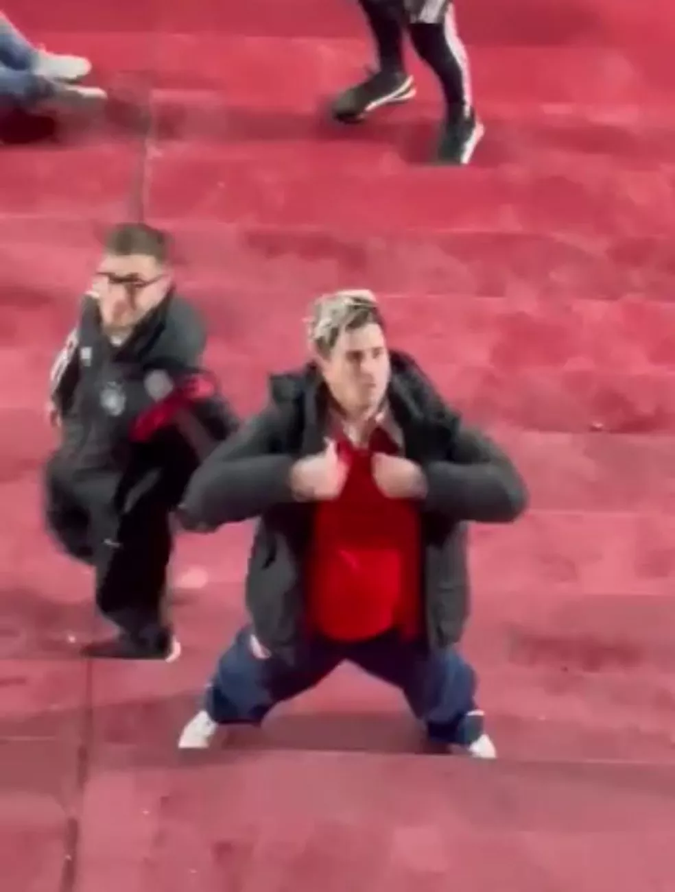 Um dos torcedores do Independiente que imitou macaco na direção da torcida do CearáReprodução de vídeo