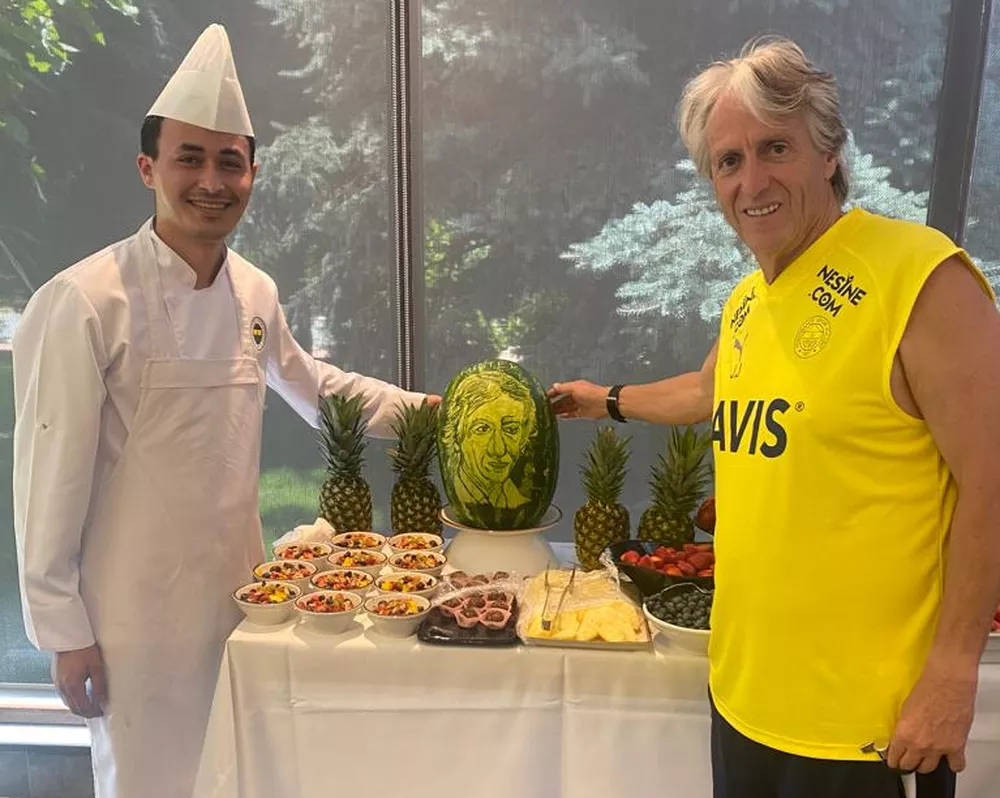 Durante a pré-temporada do Fenerbahçe, Jorge Jesus foi surpreendido com uma homenagem inusitada. Um chef de cozinha esculpiu o rosto do treinador português numa melancia e colocou à mostra no local onde a delegação turca faz as refeições.