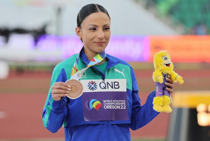 Brasileira, de 24 anos, conquistou medalha no salto em distância