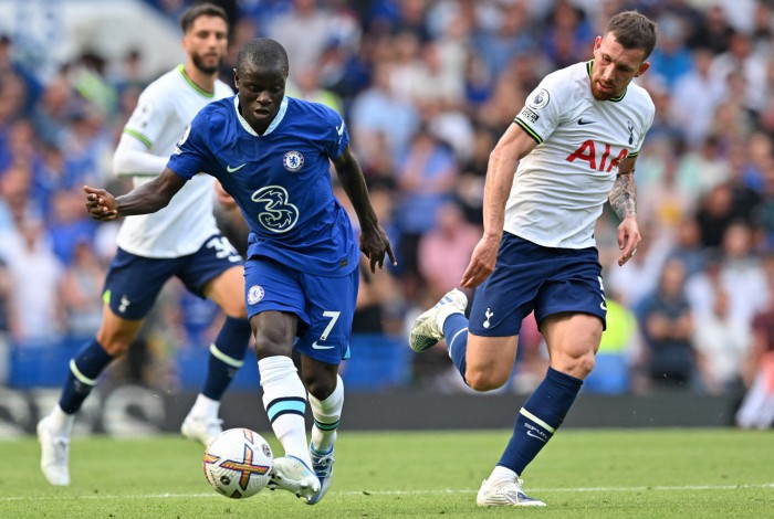Koulibaly foi o grande nome do primeiro tempo, que teve muita intensidade e domínio do Chelsea. Após o time conseguir escanteio em chegada muito perigosa de Havertz e desvio de Lloris, o gol do Chelsea saiu aos 19 minutos com jogada direta entre dois reforços do time. Cucurella cobrou escanteio e o zagueiro Koulibaly emendou um chute certeiro de primeira para estufar a rede com um belo gol. O Tottenham conseguiu uma descida de perigo, mas parou em Mendy, enquanto o Chelsea teve nova chance nos pés de Mason Mount, que mandou para fora.