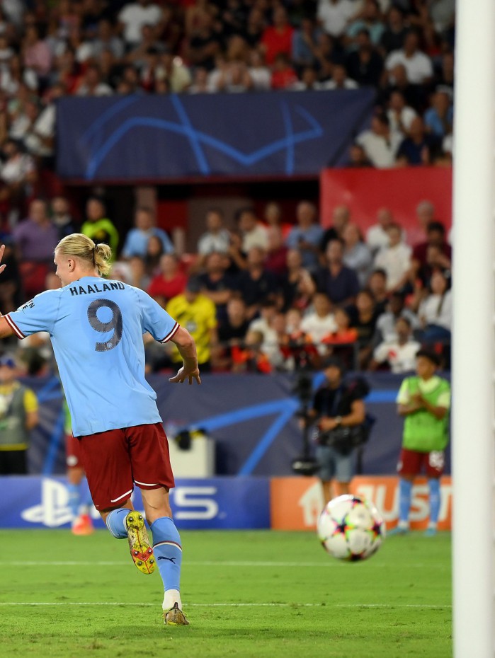 O "cometa Haaland" passou pela Espanha. Em noite histórica do centroavante, o Manchester City bateu o Sevilla por 4 a 0 no Estádio Ramón Sánchez-Pizjuán, pela primeira rodada do Grupo G da Liga dos Campeões. Phil Foden, Rúben Dias e o norueguês (2x) marcaram os gols dos Citizens no jogo.