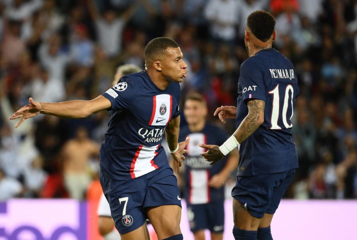 Primeiro gol de Mbappé no jogo saiu após lindo passe de NeymarFRANCK FIFE / AFP