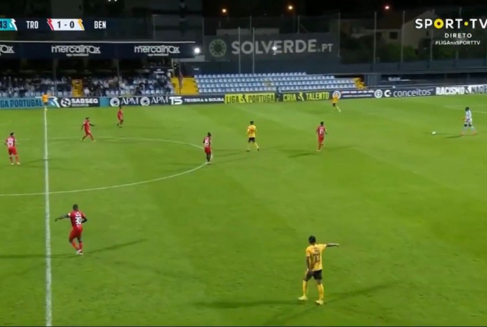 Um gol inusitado marcou o jogo entre Benfica B e Trofense, válido pela segunda divisão do Campeonato Português. Na última segunda-feira, o goleiro Samuel Soares, dos Encarnados, deu um chutão ainda do campo de defesa em direção à meta adversária. A bola carimbou o travessão, bateu no goleiro da outra equipe e entrou. Abaixo, confira o lance: