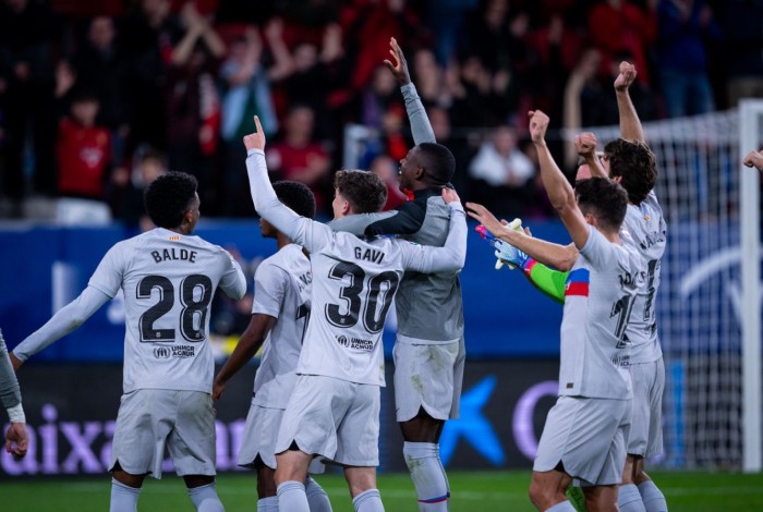 Jogadores comemoram a virada do Barcelona contra o Osasuna fora de casaDivulgação/FC Barcelona