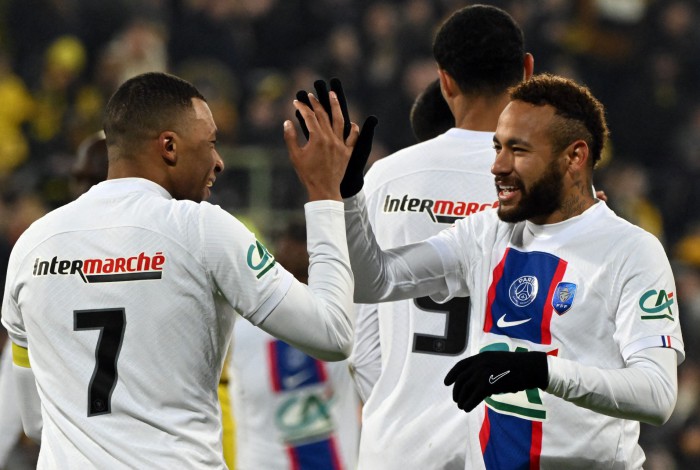 Kylian Mbappé e Neymar brilharam na goleada do Paris Saint-Germain sobre o Pays de Cassel, nesta última segunda-feira (23), pela Copa da França. O craque francês marcou cinco gols, enquanto o brasileiro marcou uma vez e deu duas assistências. Porém, a boa relação entre os astros não foi tão simples assim. O técnico Christopher Galtier revelou que precisou 'puxar a orelha' dos jogadores no intervalo.