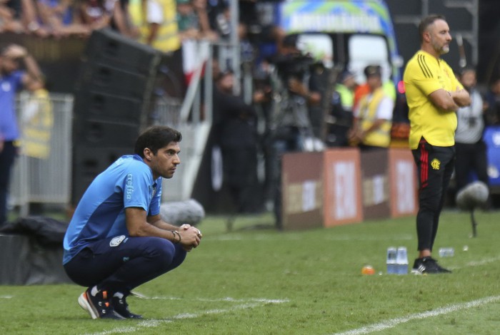 Técnico do Palmeiras, Abel Ferreira discutiu com Vitor Pereira, comandante do Flamengo, em alguns momentos da Supercopa do BrasilSERGIO LIMA / AFP