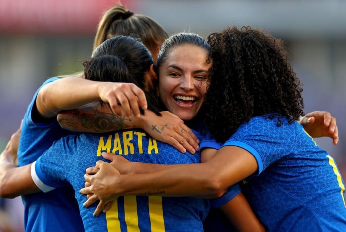 Aos 26 minutos, o talento mais uma vez desequilibrou. A veterana Marta, que havia entrado em campo quatro minutos antes, fez bom cruzamento da esquerda e Debinha só teve o trabalho de empurrar para dentro do gol: 1 a 0, Brasil.