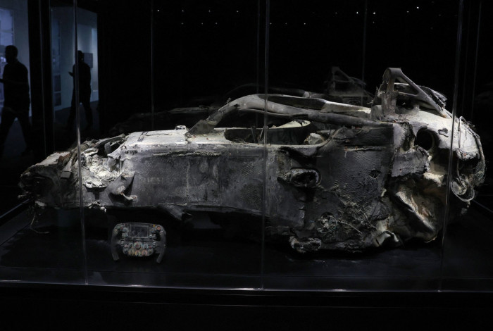 Exposição exibe carro queimado de Grosjean após acidente no Bahrein em 2020