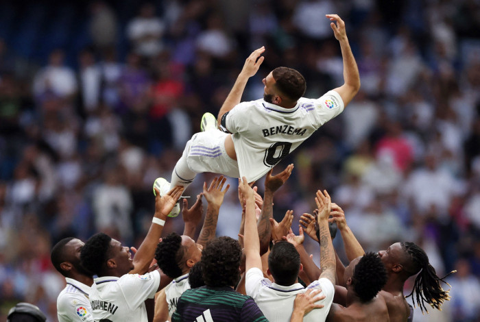 Na última partida de Benzema com a camisa do Real Madrid, os merengues empataram em 1 a 1 com o Athletic Bilbao no Santiago Bernabéu, neste domingo, pela 38ª rodada do Campeonato Espanhol. Oihan Sancet abriu o placar para o time visitante, mas o atacante francês marcou de pênalti para dar números finais ao jogo.