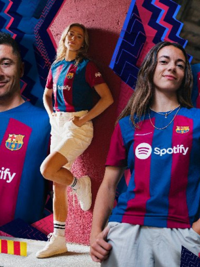 Nesta quinta-feira, 15, o Barcelona apresentou a camisa que será usada na temporada 2023/24. A peça leva as cores azul e grená e conta com um losango sublimado acima do escudo, que representa a primeira equipe feminina do clube a disputar uma partia de futebol no Camp Nou, estádio do Barça.