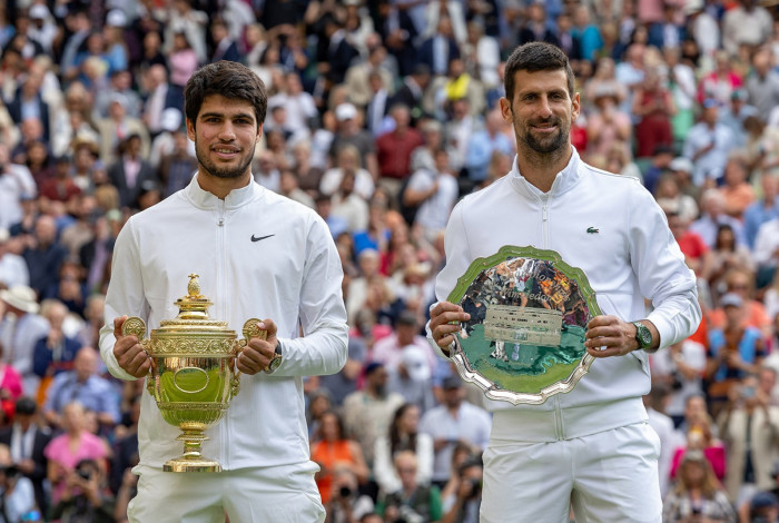 Inglaterra - Em uma final épica, Carlos Alcaraz venceu o torneio de Wimbledon ao derrotar Novak Djokovic por 3 sets a 2, com parciais de 1/6, 7/6 (8/6), 6/1, 3/6 e 6/4. Com o resultado, o espanhol conquistou o segundo Grand Slam da carreira. Após a partida, o sérvio se rendeu ao talentoso espanhol de apenas 20 anos, o coroando como o melhor jogador do mundo.