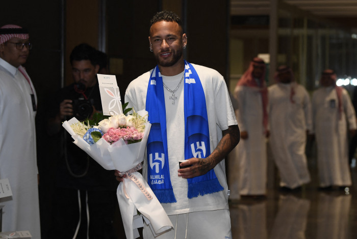 Neymar desembarcou na Arábia Saudita e foi recebido com flores e festaAFP
