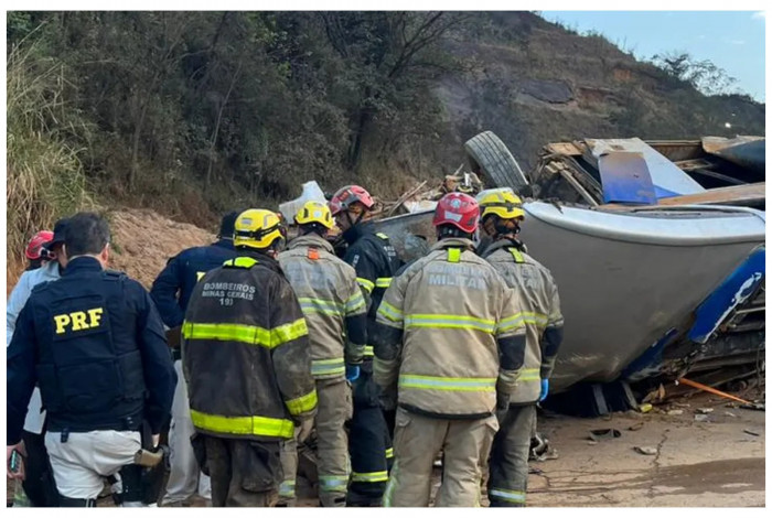 Ônibus com torcedores do Corinthians capotou no trajeto entre Minas Geras e São PauloCorpo de Bombeiros MG/Divulgação