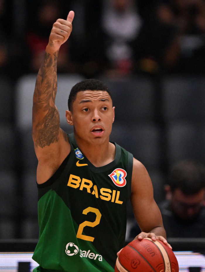 Yago foi o destaque do Brasil na vitória sobre a Costa do Marfim, pela terceira rodada da Copa do Mundo de basqueteAdek Berry / AFP