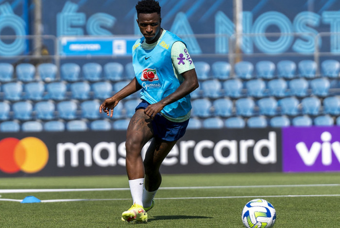 Vini Jr durante atividade da seleção brasileira Foto: Joilson Marconne/CBF