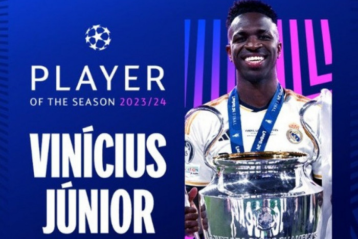 Rio - O atacante Vini Jr., de 23 anos, do Real Madrid foi eleito o melhor jogador da Liga dos Campeões da temporada de 2023/2024. O brasileiro foi também um dos quatro representantes do clube espanhol na seleção da principal competição do futebol europeu.