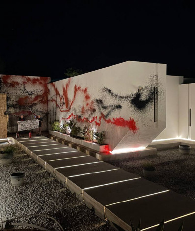 Fachada da mansão de Messi em Ibiza foi alvo de protesto de ativistas ambientaisHandout / Futuro Vegetal / AFP