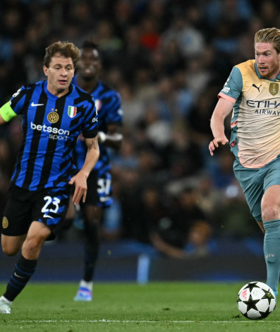 Em uma grande oportunidade do City, já na reta final do primeiro tempo, De Bruyne saiu na cara de Sommer, mas finalizou em cima do goleiro. Antes da batida do escanteio, momentos de apreensão com o belga acusando dores na perna e recebendo atendimento. Guardiola parecia assustado ao ver seu astro do meio campo mancando. Para piorar, quase a Inter vai ao intervalo em vantagem. Ederson salvou com os pés.