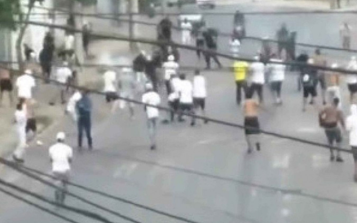 Imagens que circulam nas redes sociais mostram torcedores organizados das duas equipes entrando em conflito nas ruas da capital do estado, na região de Venda Nova. A partida começou às 16 horas.