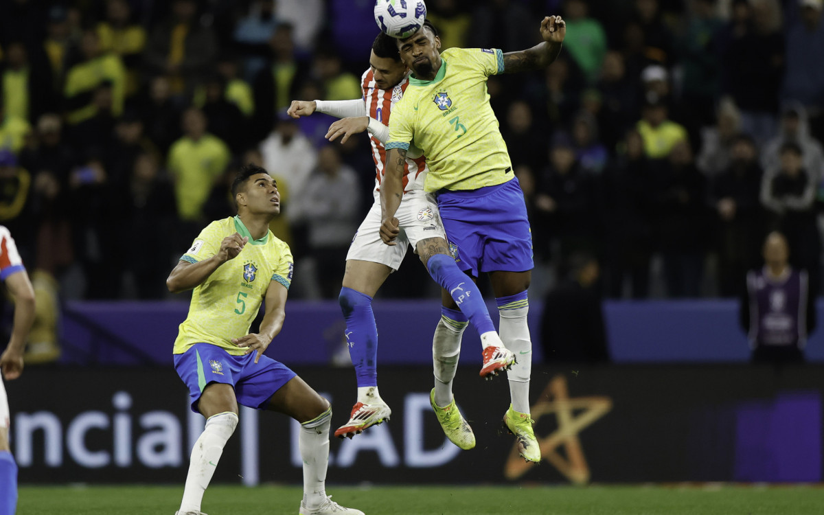 Alexsandro disputa lance de cabeça em jogo contra o ParaguaiRafael Ribeiro / CBF