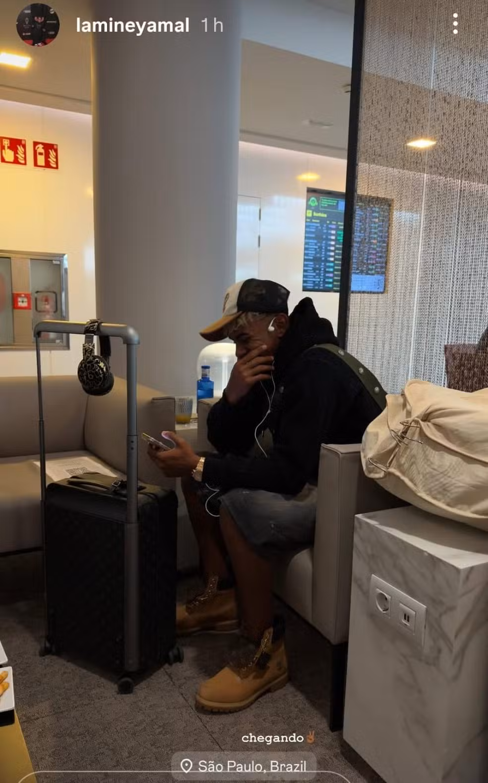 Lamine Yamal desembarcou em São Paulo nesta segunda (16)Reprodução