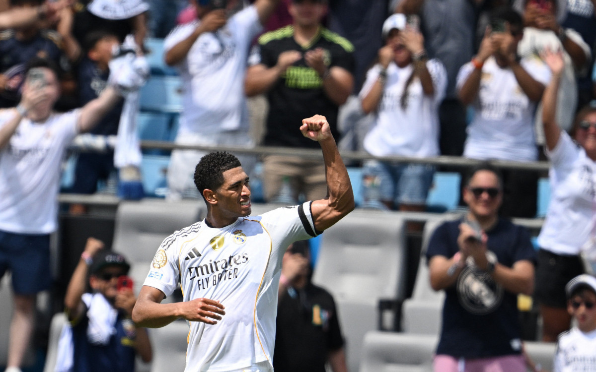 Jude Bellingham celebra gol marcado pelo Real Madrid sobre o Pachuca (MEX)Federico Parra / AFP