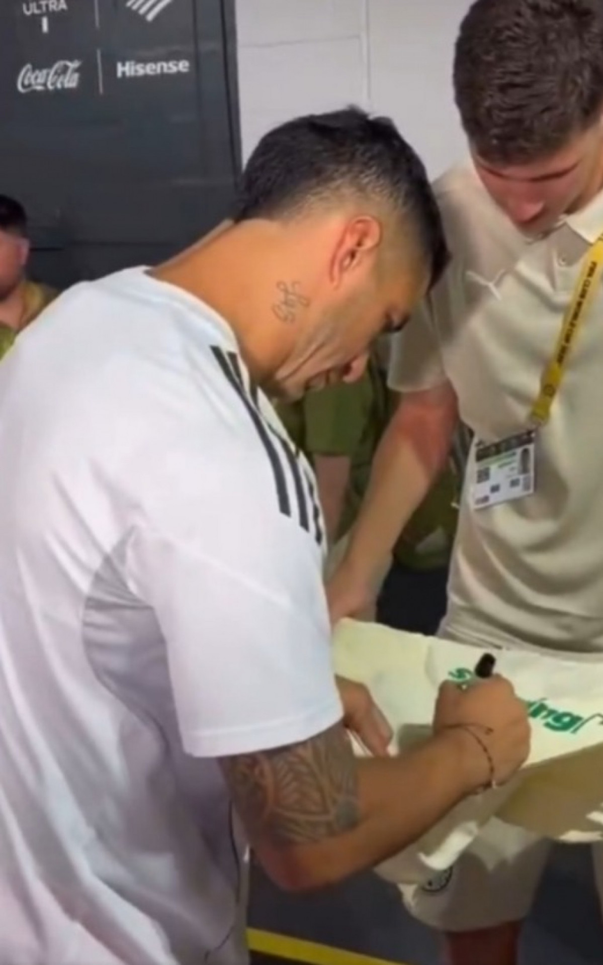 Estados Unidos - Os jogadores do Palmeiras aproveitaram a partida contra o Inter Miami, que terminou empatada por 2 a 2, válida pelo Mundial de Clubes, para tietar Luis Suárez. O atacante deu autógrafos e tirou fotos com atletas do Alviverde.
