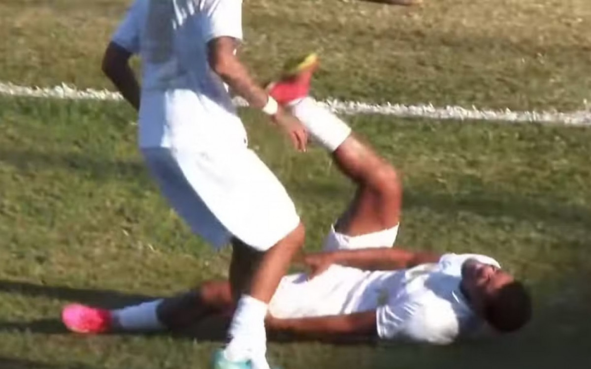 Nas imagens, é possível ver que Kesley sente o joelho direito na aterrisagem. Segundo o médico do Grêmio Prudente, o atacante pode ficar até oito meses longe dos gramados.