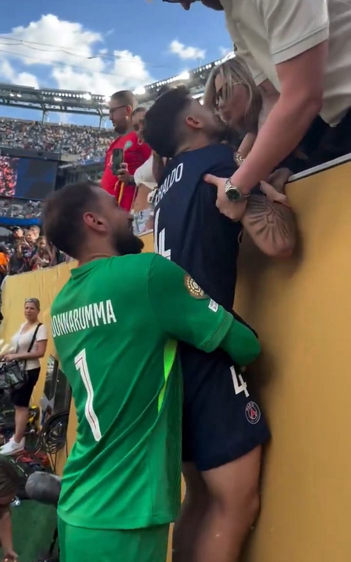 Estados Unidos - Beraldo contou com uma ajuda de Donnarumma para dar um beijo na mulher após a vitória do PSG sobre o Real Madrid por 4 a 0, na quarta-feira (9), pelo Mundial de Clubes. O zagueiro brasileiro só conseguiu chegar até Rafaela Albino porque foi levantado pelo goleiro de 1,96m.