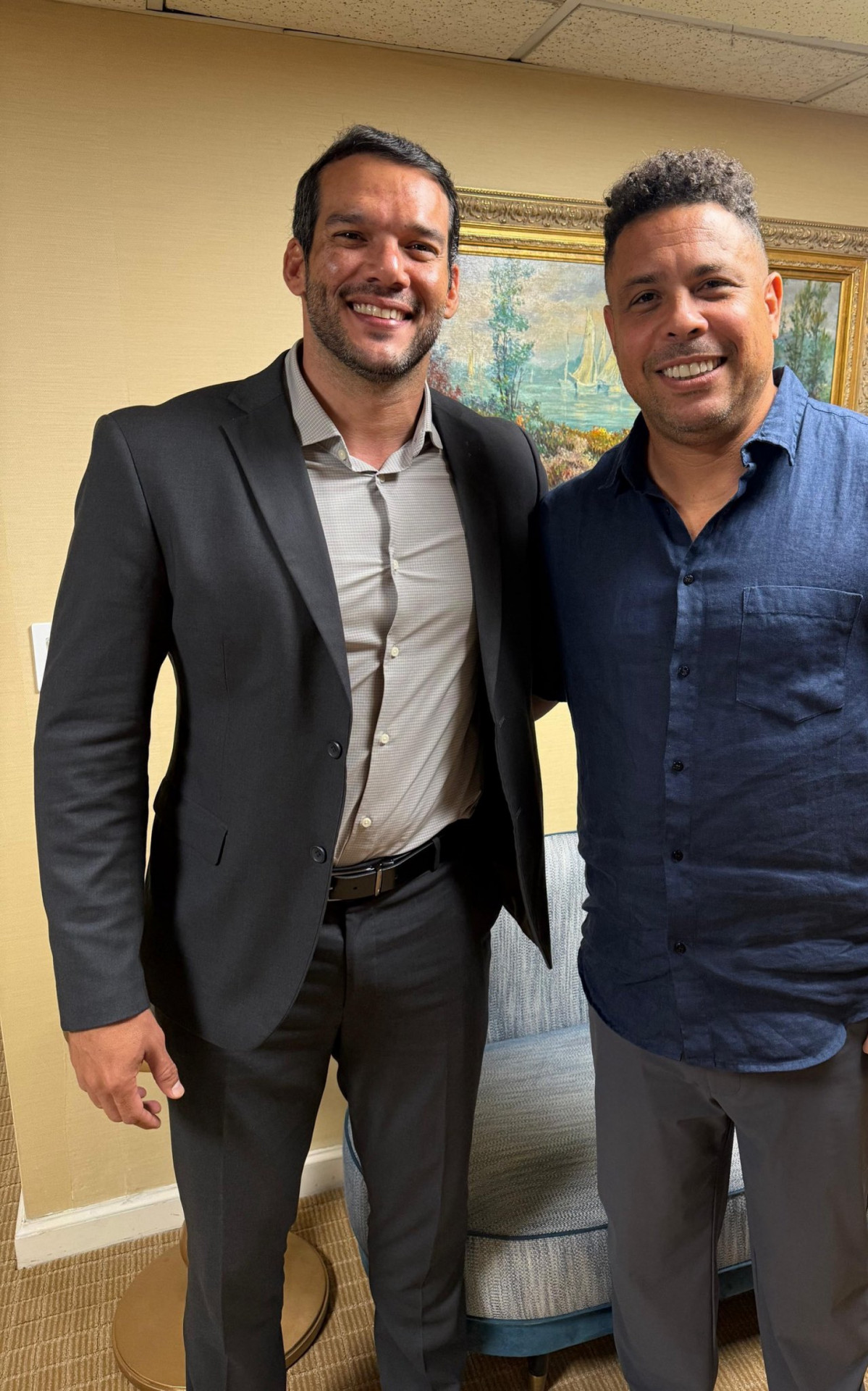 Publicidade"Falamos sobre alguns dos nossos temas prioritários, como calendário, educação continuada da arbitragem e Fair Play Financeiro", escreveu Xaud nas redes sociais. "Ronaldo é uma lenda do esporte e contamos muito com ele nessa jornada que estamos apenas iniciando. As portas da CBF estarão sempre abertas para o Fenômeno e para todos os craques do futebol brasileiro", disse o presidente.