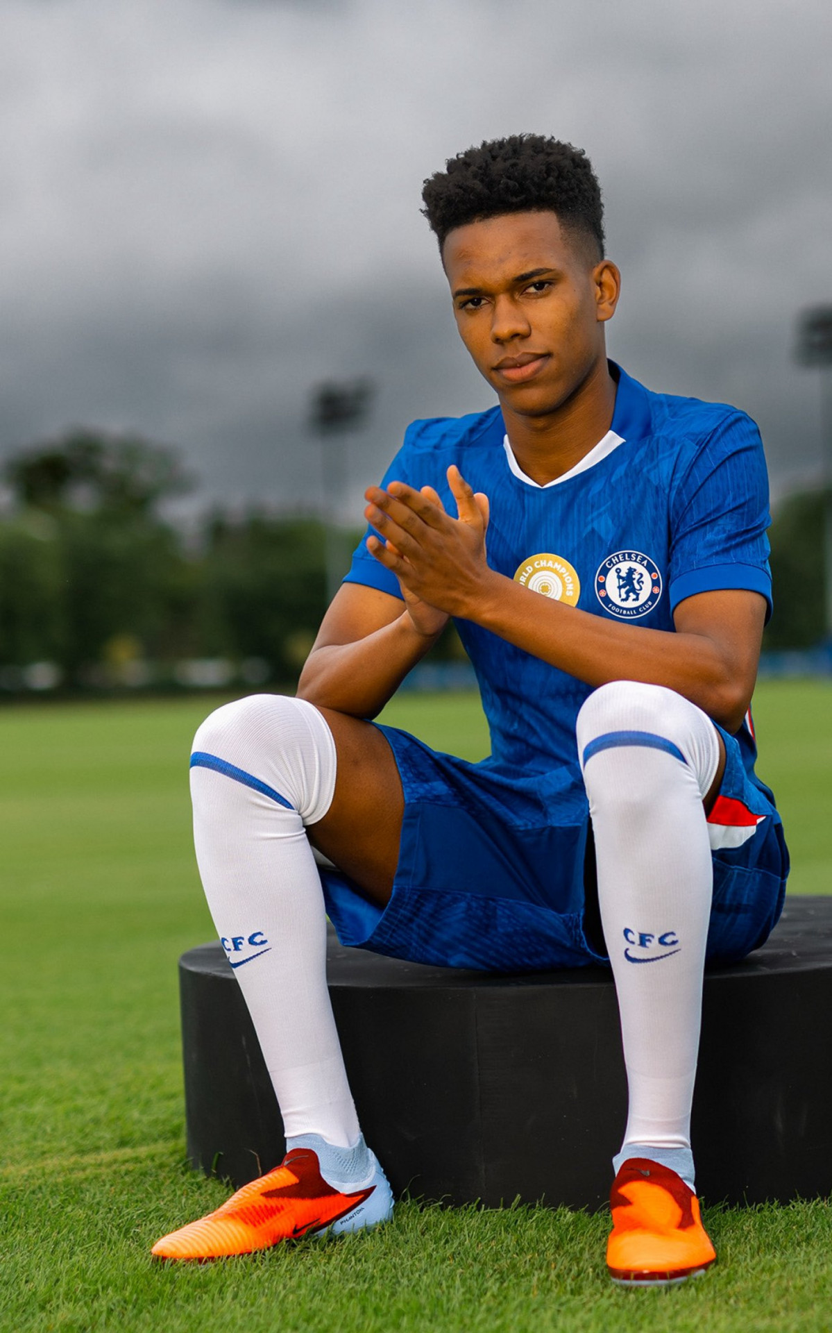 Estêvão em sua chegada ao ChelseaDivulgação / Chelsea