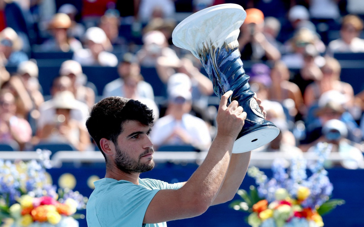 O tenista espanhol Carlos Alcaraz conquistou pela primeira vez o Masters 1000 de Cincinnati, nos Estados Unidos, nesta segunda-feira (18), após o abandono do italiano Jannik Sinner na final.
