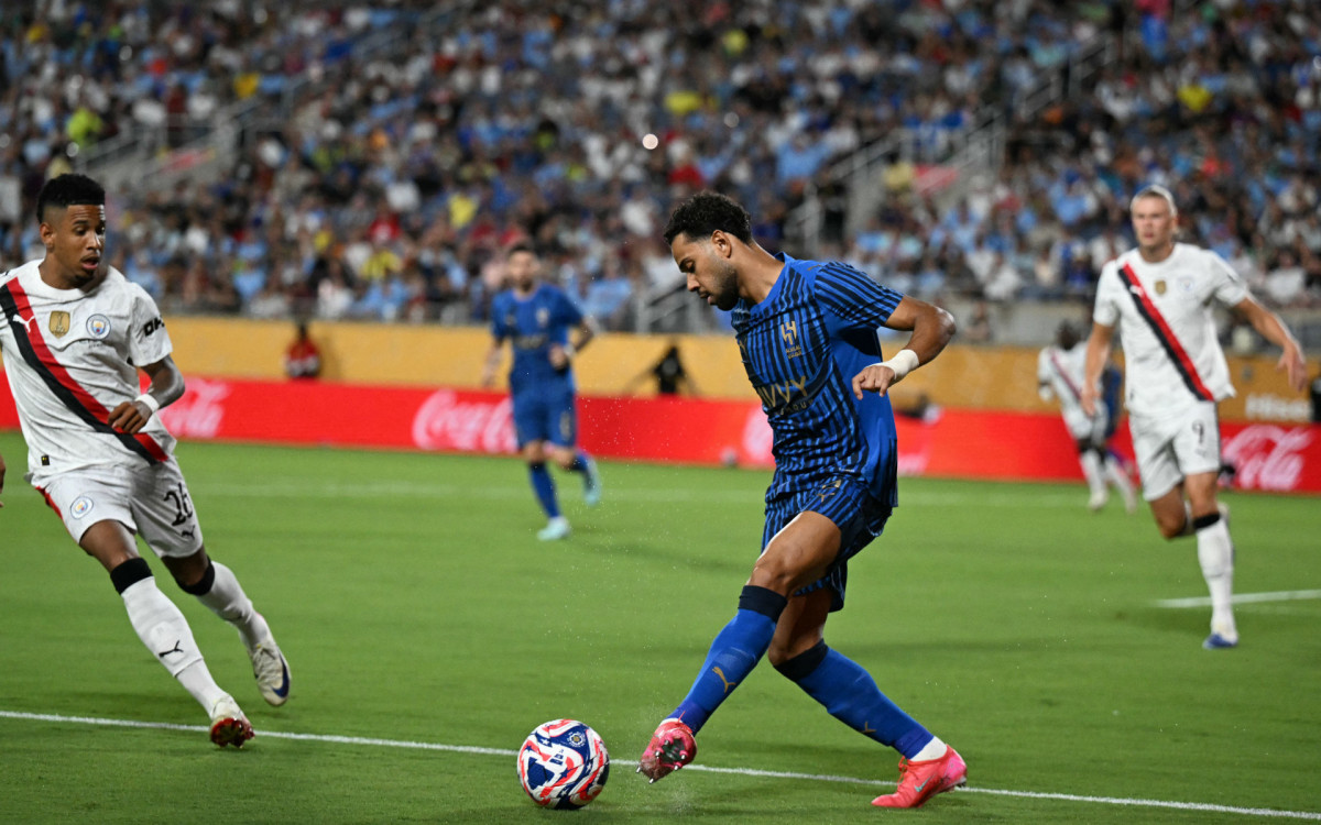 Renan Lodi em ação no jogo entre Al-Hilal e Manchester CityChandan Khanna / AFP