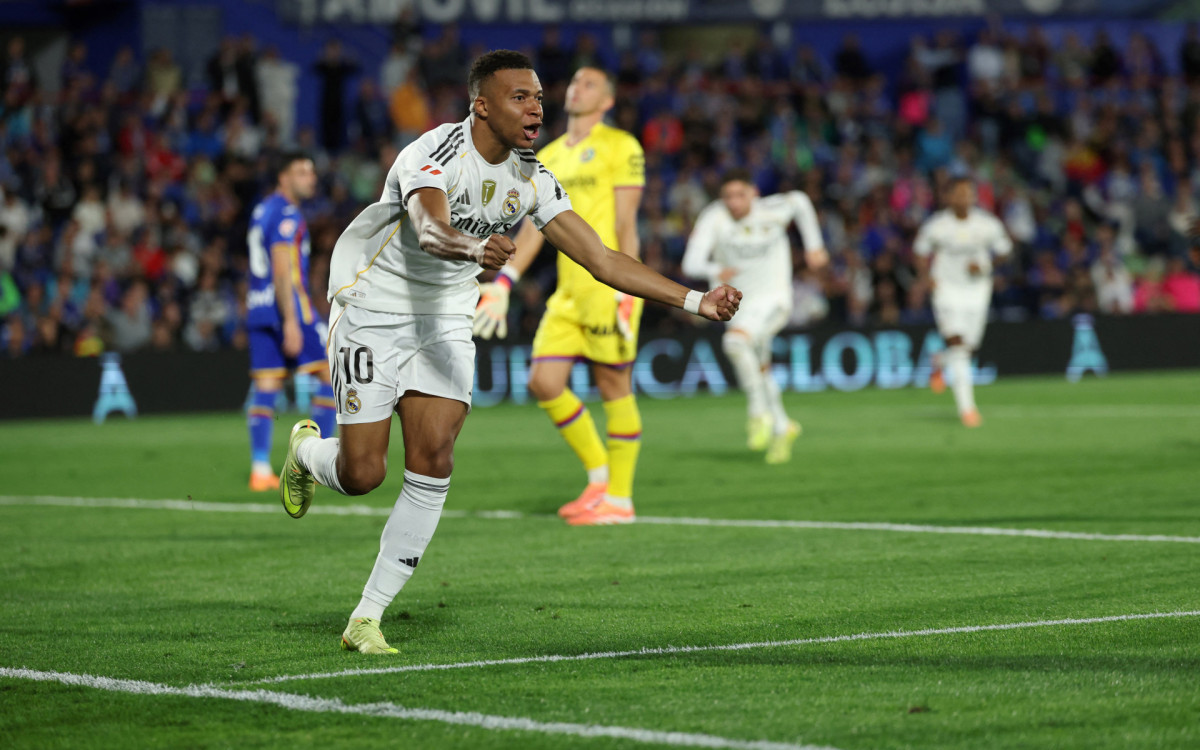 Mbappé celebra gol marcado pelo Real Madrid sobre o GetafeThomas Coex / AFP