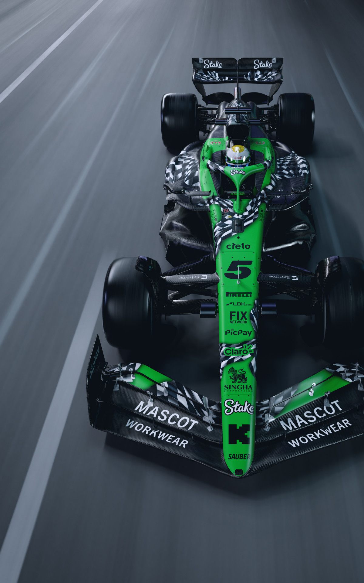 Além das cores verde e preto, os carros do brasileiro Gabriel Bortoleto e do alemão Nico Hülkenberg terão um layout diferente. O novo design traz uma bandeira quadriculada nas laterais do carro. A novidade foi batizada de "Final Lap" (última volta, em uma tradução livre).