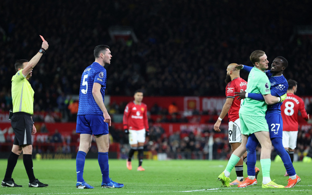 Apesar da inferioridade numérica, o Everton abriu o placar com Dewsbury-Hall e saiu do Old Trafford com os três pontos.