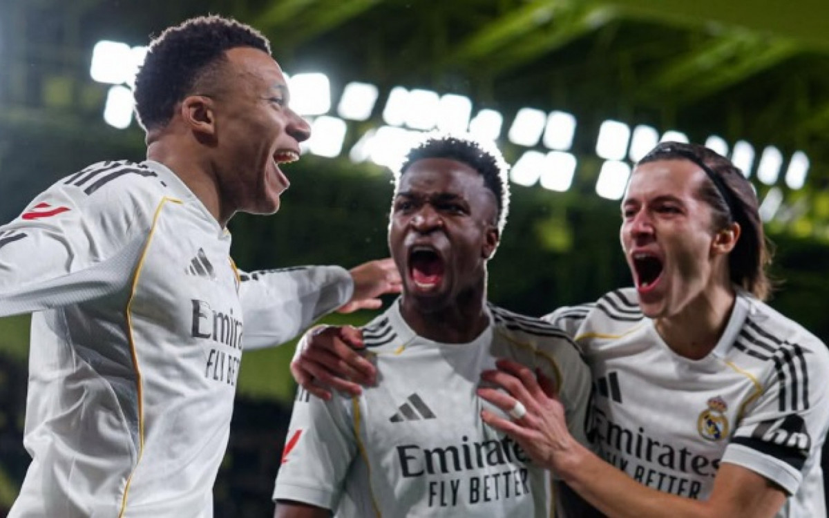 O Real Madrid venceu o Villarreal fora de casa por 2 a 0, neste sábado (24), pela 21ª rodada do Campeonato Espanhol, e assumiu momentaneamente o 1º lugar da competição. Os gols foram marcado por Kylian Mbappé, e um deles saiu após jogada de Vinicius Júnior.