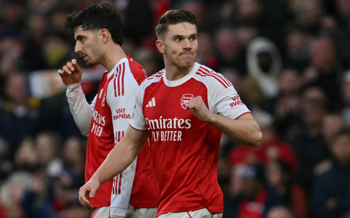 O jeito foi o Arsenal arriscar chute de longe. Aos 30 minutos, Rice acertou uma bomba e levou muito perigo à meta do goleiro Roefs. O caminho foi mostrado e Zubimendi repetiu o gesto para abrir o placar. Uma finalização forte, rasteira, que ainda beliscou a trave antes de entrar: 1 a 0 para o Arsenal, aos 41 minutos.
