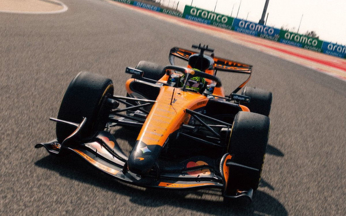 Lando Norris mostrou força com a McLaren no primeiro treino de pré-temporada da Fórmula 1 no BahreinDivulgação / McLaren