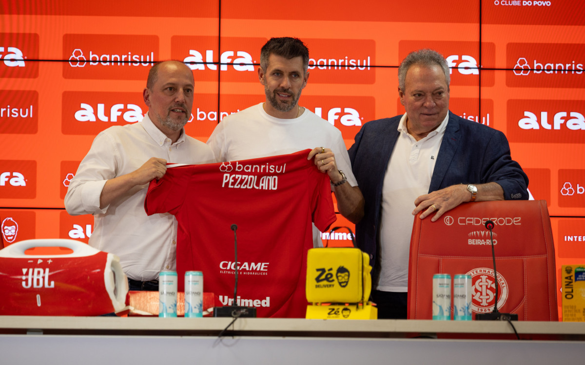 Alessandro Barcellos, presidente do Internacional, Paulo Pezollano, técnico, e Abel Braga, diretor técnicoFilipe Maciel / Internacional