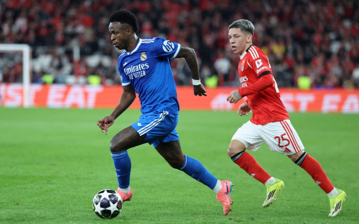 Depois de abrir o placar aos 5 minutos do segundo tempo na partida vencida por 1-0 pelo time espanhol - o jogo de ida da repescagem da Liga dos Campeões -, Vini Jr. comemorou diante dos torcedores do Benfica, o que provocou uma discussão acalorada com vários jogadores da equipe portuguesa e rendeu um cartão amarelo ao brasileiro.
