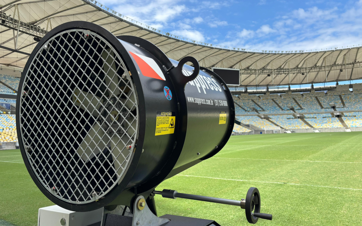 O objetivo desses ventiladores industriais de grande porte é reduzir a umidade excessiva, especialmente em períodos de menor incidência solar. O aparelho também contribui para o fortalecimento estrutural da grama, aumentando sua resistência à sequência de partidas, já que muitas vezes não há tempo de descanso.